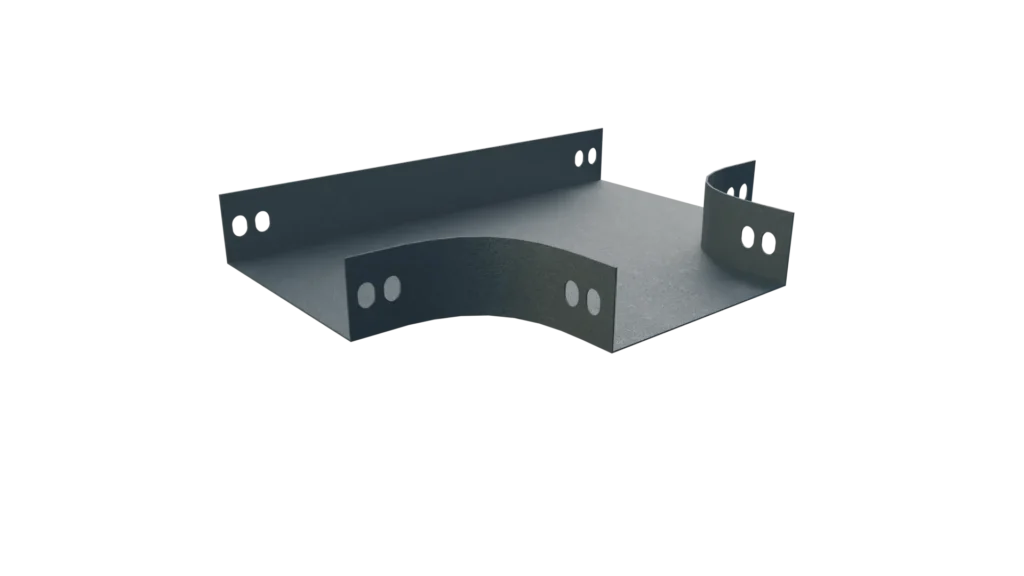 Horizontal Tee Cable Tray adalah aksesoris kabel tray yang berfungsi sebagai percabangan jalur kabel secara horizontal ke kiri dan kanan dari jalur utama. Komponen ini digunakan untuk mengatur distribusi kabel agar tetap rapi, aman, dan terstruktur, terutama pada instalasi kelistrikan dan sistem data berskala menengah hingga besar.